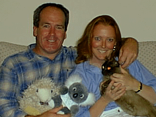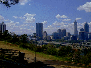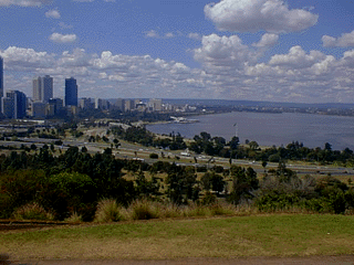 The gorgeous Perth skyline, and my friends Liz and Claude Morrissey, with their cat Sam and a couple of family friends <g>