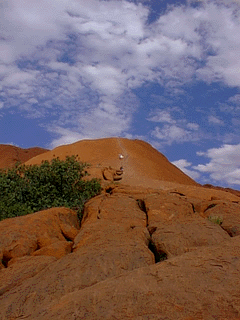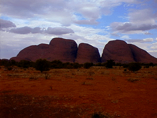 The Olgas were slightly more interesting, if only because they're more accessible. The Aborigines believe Kata Tjuta are the heads of beings who created the earth and then sank back into it in the Dreamtime. A less poetic metaphor is that they look like plums in a pudding. Whatever the story behind them, they're majestic and magical structures. Mt. Olga, at 1,700 feet, is nearly 600 ft. higher than Ayers Rock.