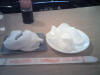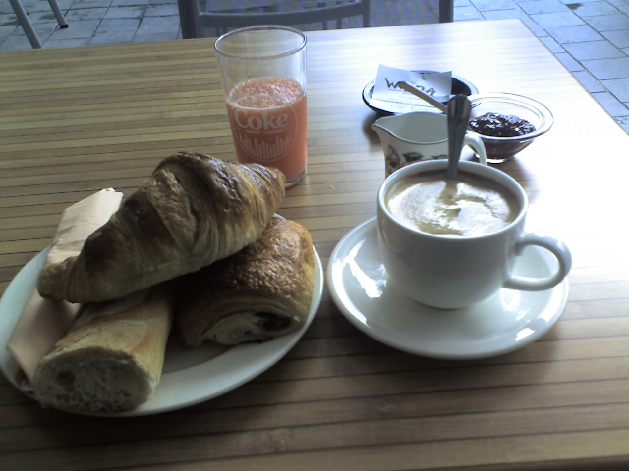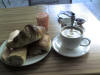 Scenes from Place Drouet d'erlon, a pedestrian drag, including a shot of the Hotel Bristol, where I was staying, taken from a café across the street. Interesting note: lasagna in France has ham in it (they pretty much try to get ham into everything in France). The Tokyo Café was even more interesting because none of the Japanese waiters spoke a word of Japanese, only French. So nobody knew, for instance, what "gyoza" was, and we had to find the item on the menu where they finally understood: "Oh...! Ravioli...!" (ravioli????) I had to take a picture of the rice cracker because I mistook it at first for a used washcloth. And then I took a picture later of my used washcloth next to it, so you'd see how easy it was to make this mistake (lol). Breakfast in Reims (pretty much anywhere in France) is a mountain of bread -- a baguette, a chocolate croissant, and a regular croissant, with coffee and jam and juice. Don't ask me why these people aren't as big as houses.