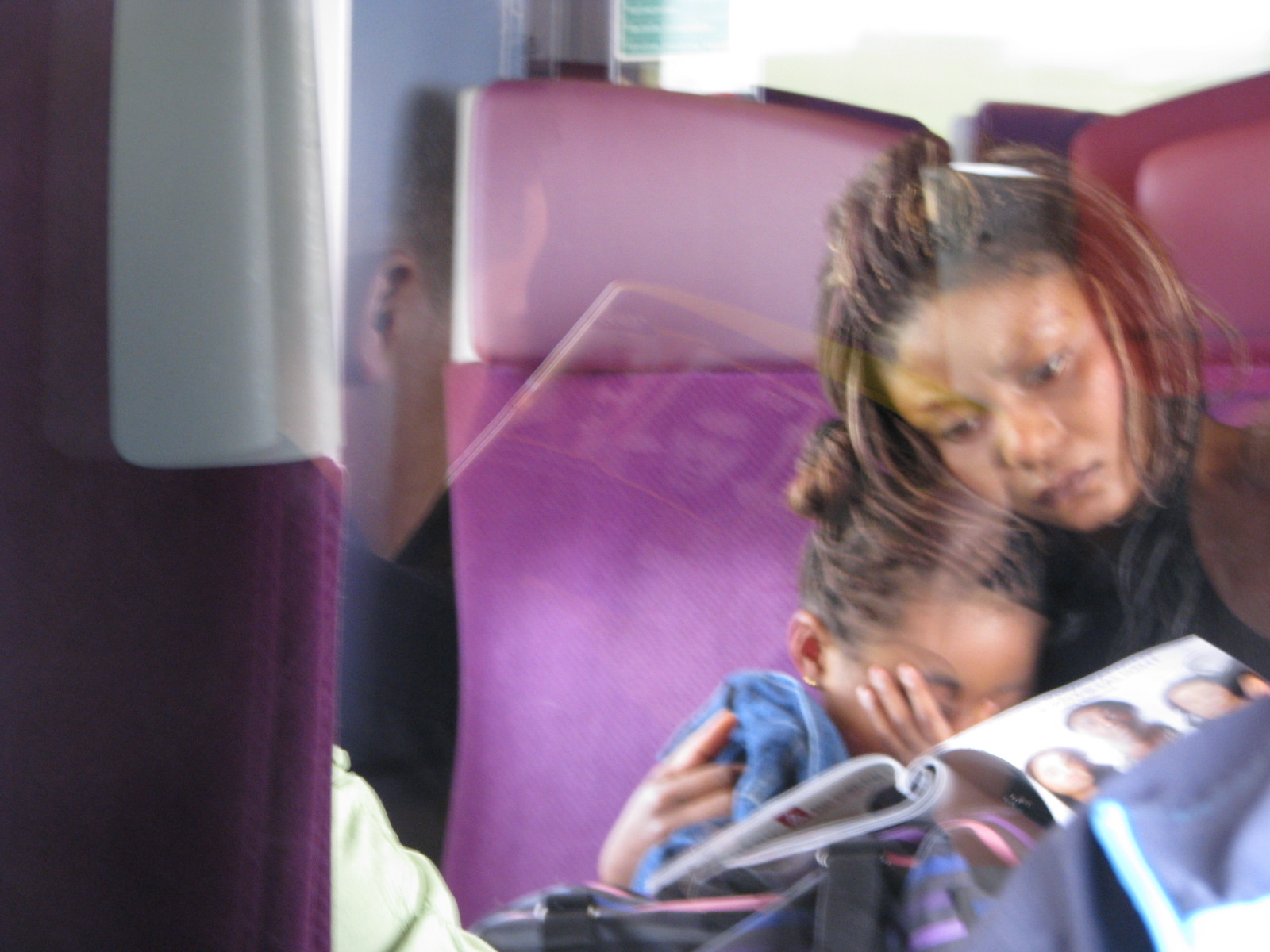 The train station, and a lady on the train whose little girl was sleeping on her and who looked a little like religious artwork herself.