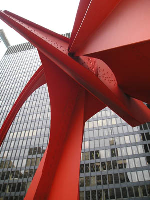 3. A "flamingo" done by Alexander Calder (more like a Klingon weapon flung at the building that missed and remains lodged into the concrete until Worf returns to retrieve it).