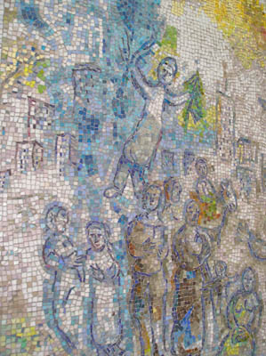 4. A two-sided painted mural of mosaic tiles entitled "The Four Seasons" by Marc Chagall.