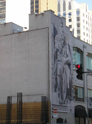 I hoofed it to the CIofArt by way of Millenium Park -- both to see the giant shiny kidney bean and the fountain with the faces. The bridge across the Michigan River had some bas reliefs carved into the supports -- being American, though, everyone depicted was wearing clothes, no French escaping boobs or anything like that.