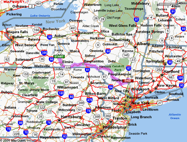 The drive to Newburgh hugged the crest of the Catskill mountains (dense forests crawling up the mountainfaces thick enough to look like moss from a distance...but no piles of dead mice or birds that you might expect from its name....) My side of the road was all streams and creeks (cricks!) of dribbling water and exposed spines of pebbles bleached white from the intense sun, and clearings with headstones sticking up like so many broken teeth...I guess they figured the dead wouldn't be bothered by the noise of the interstate roaring by. Lots of Queen Anne's lace growing alongside the road, too...made me want to pick it and put it in colored water, but who thinks to pack food coloring on a camping trip??